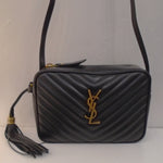 YSL Black Lou Medium Crossbody Chevron Camera Bag